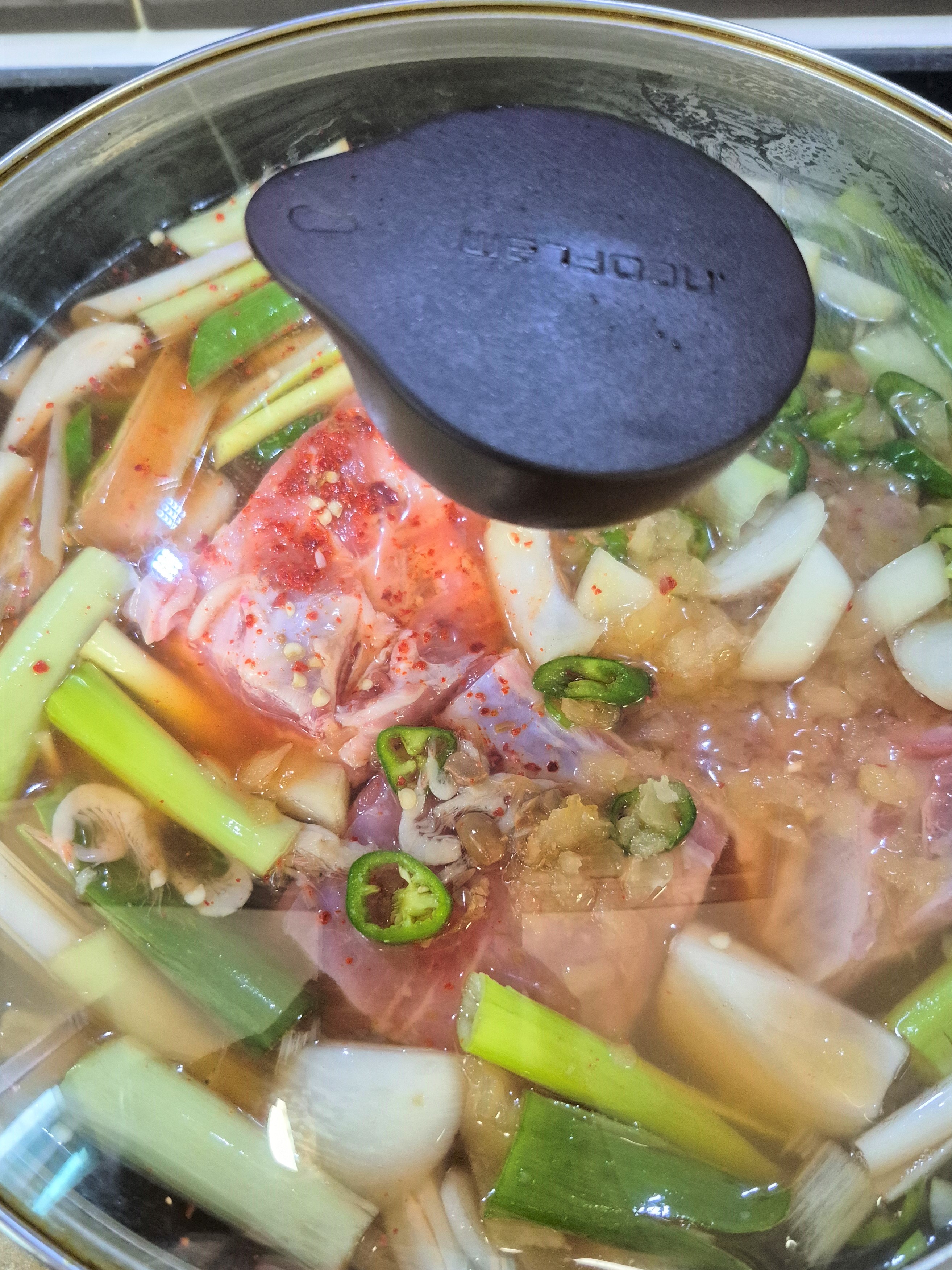 ๊น์น์ ๊ณ ๊ธฐ๋ฅผ ๋ค์ง์ด ๊ณจ๊ณ ๋ฃจ ์ตํ๊ณ ,