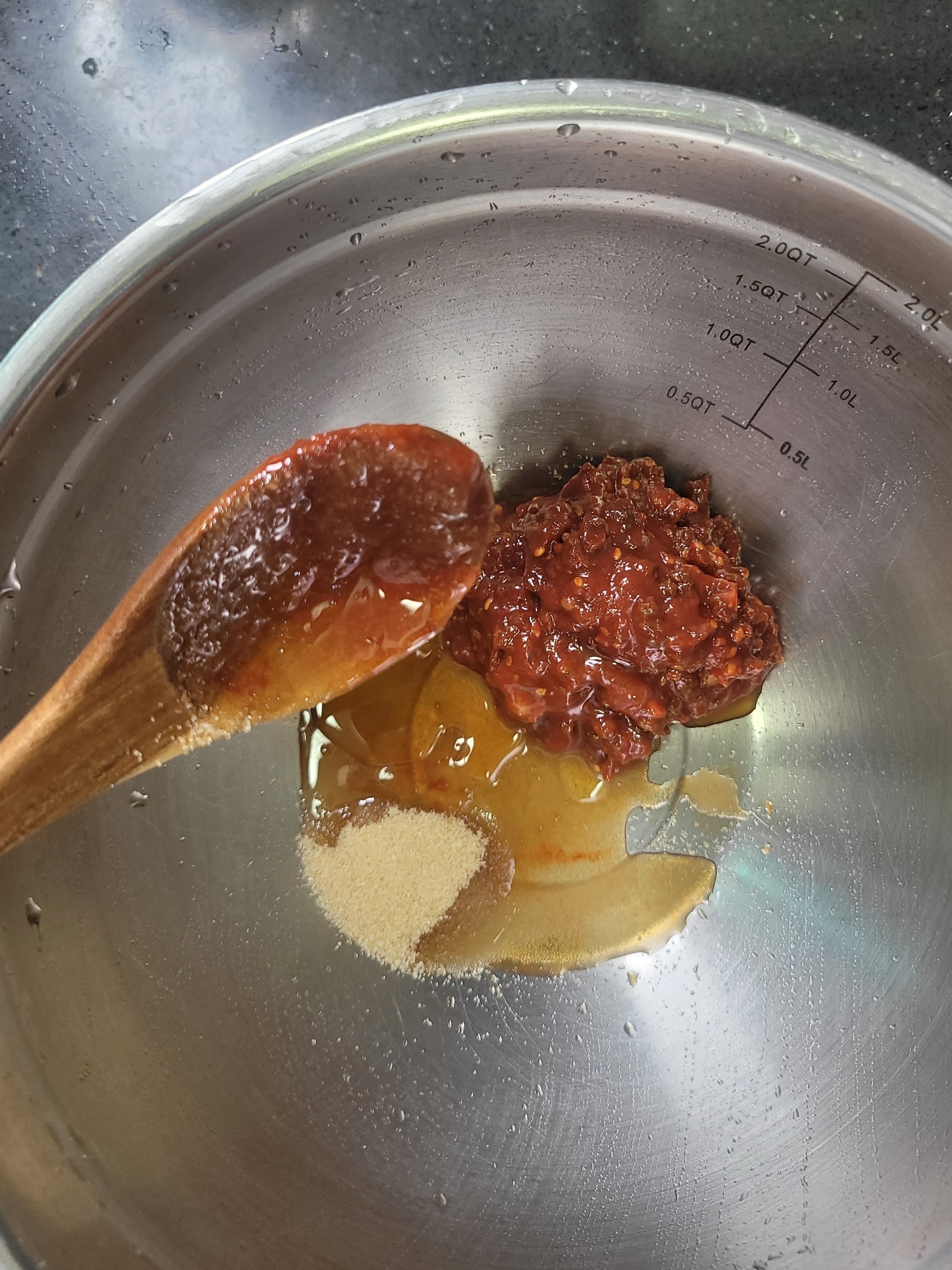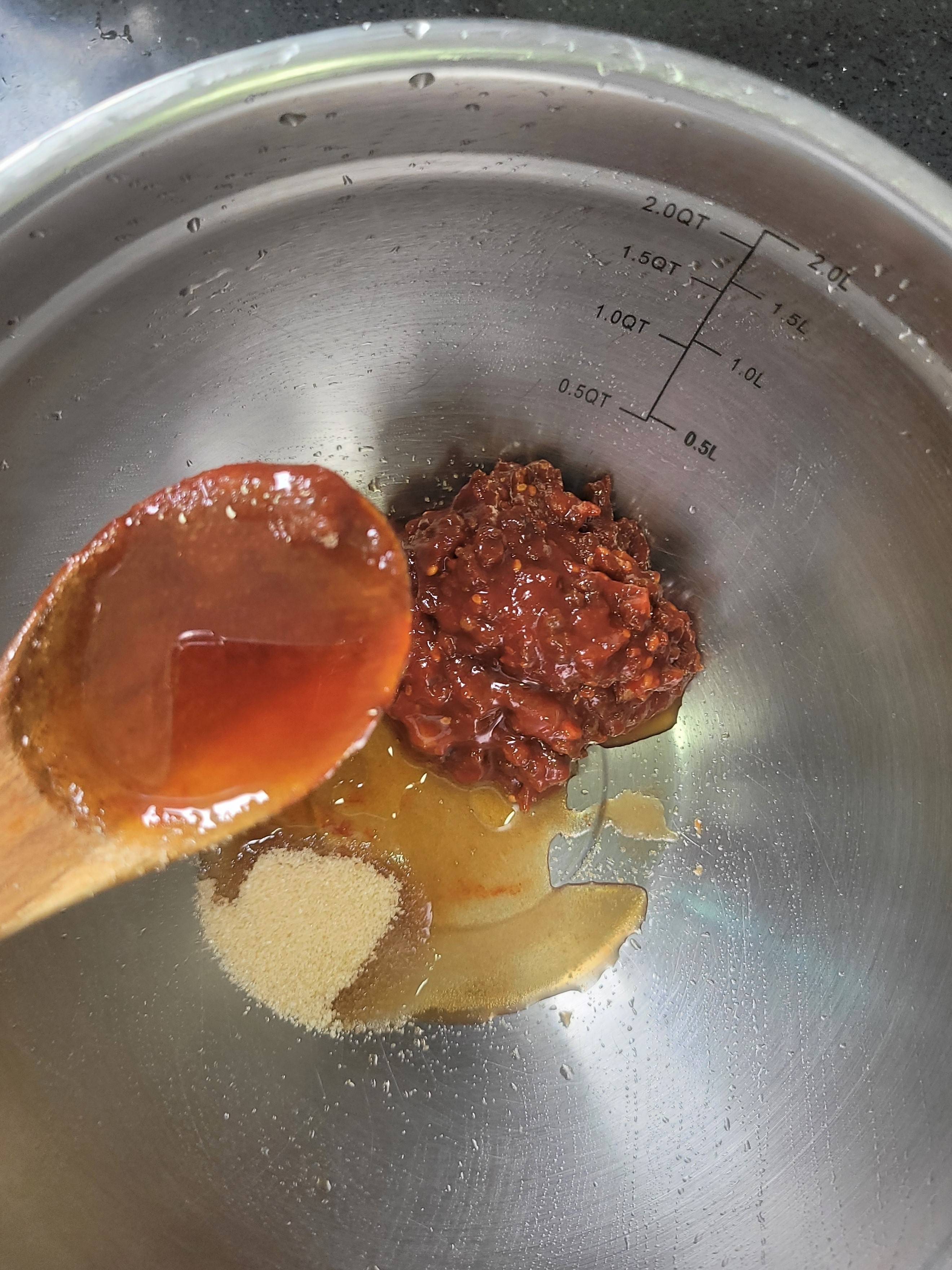 ๋ณผ์— ๊ณ ์ถ”์žฅ 2, ์„คํƒ• 2, ๊ณ ์ถง๊ฐ€๋ฃจ 1, ๋ฏธ๋ฆผ 1,