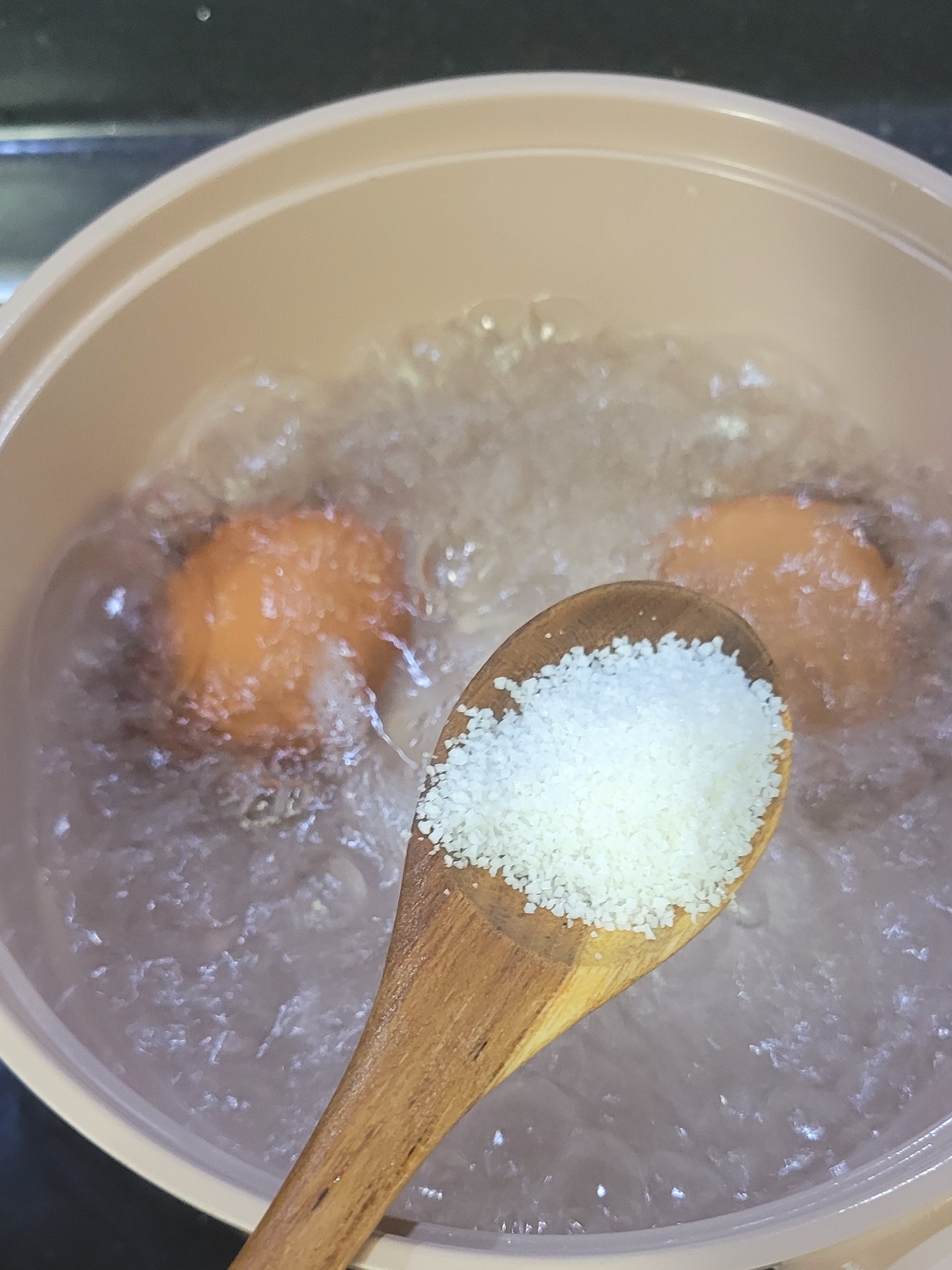 ๋‹ฌ๊ฑ€ 2๊ฐœ๋Š” ์†Œ๊ธˆ ์•ฝ๊ฐ„ ๋„ฃ์€ ๋ฌผ์— 7๋ถ„๊ฐ„ ์‚ถ๊ณ ,