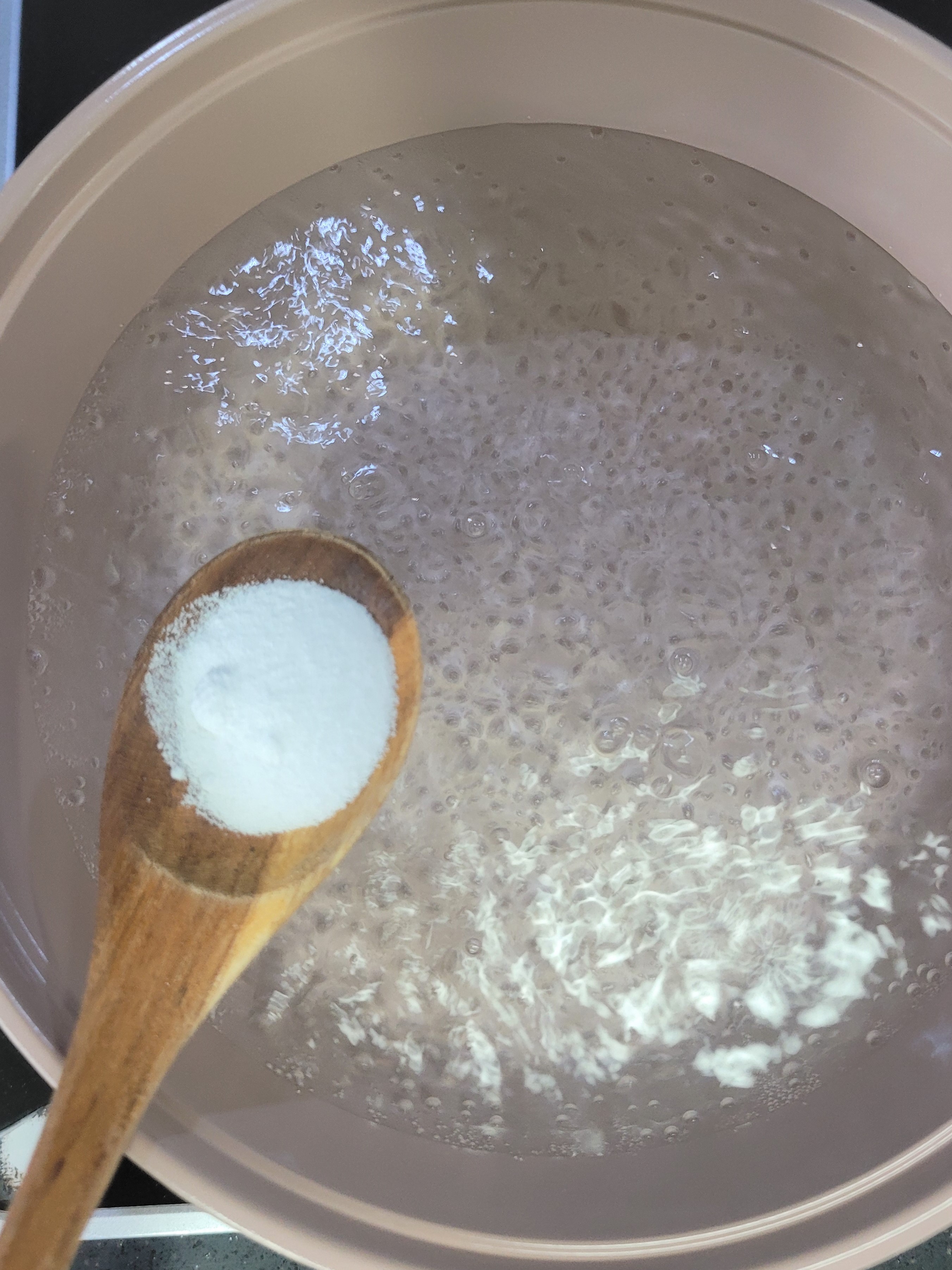 ๋ฌผ 2๋ฆฌํ„ฐ๋ฅผ ๋“์ด๊ณ , ์†Œ๊ธˆ 0.5์Šคํ‘ผ์„ ๋„ฃ์–ด์š”.