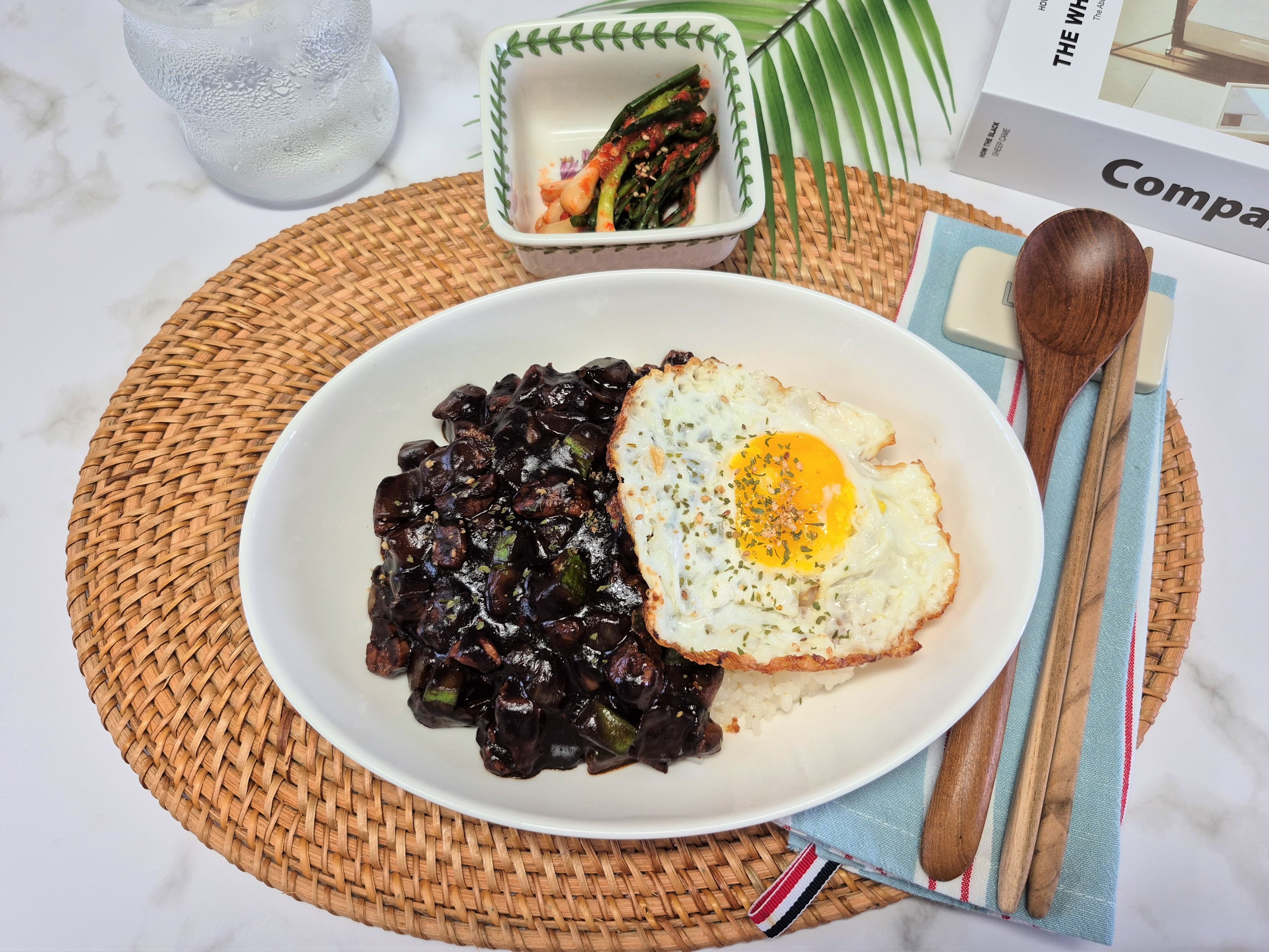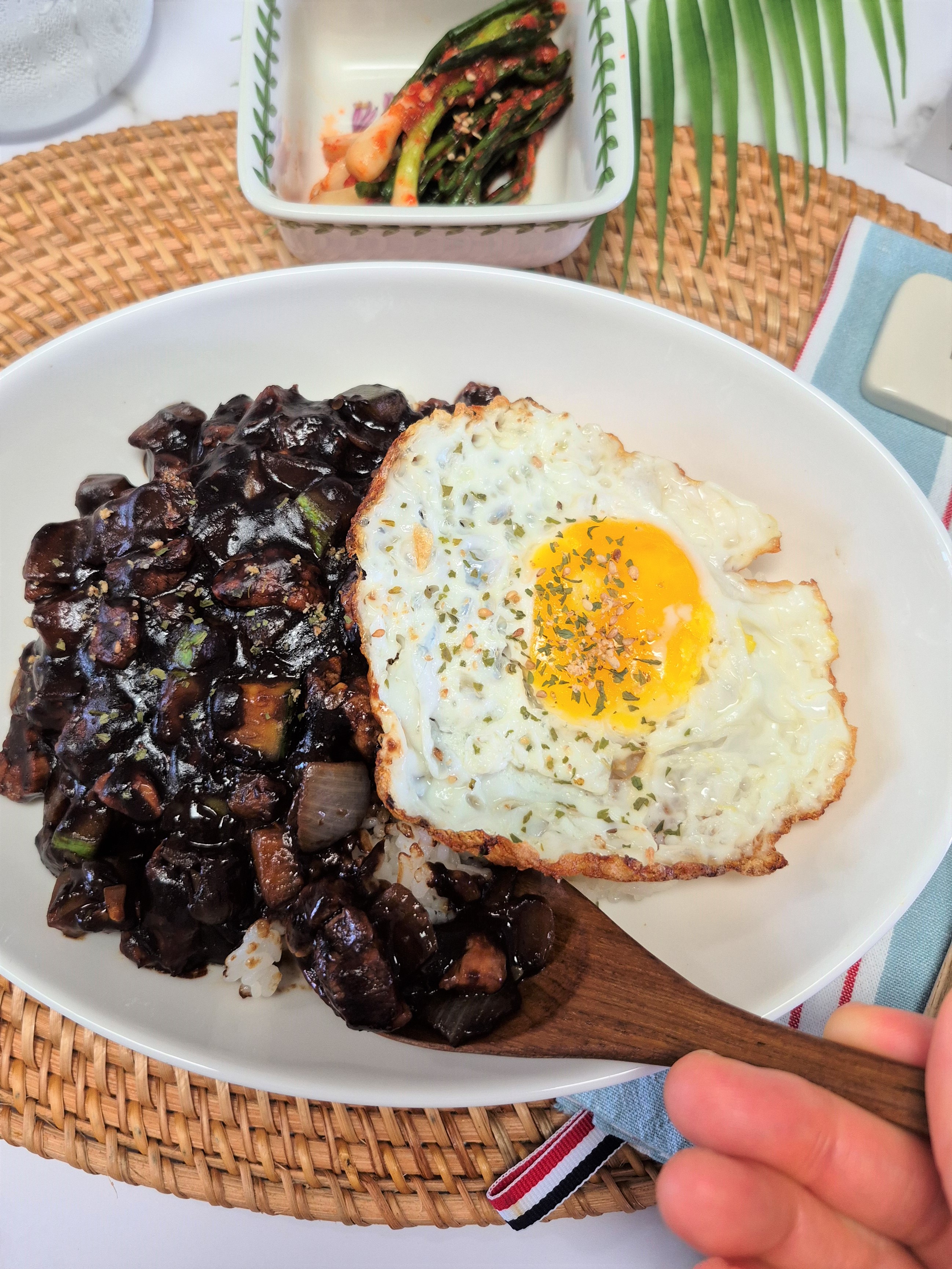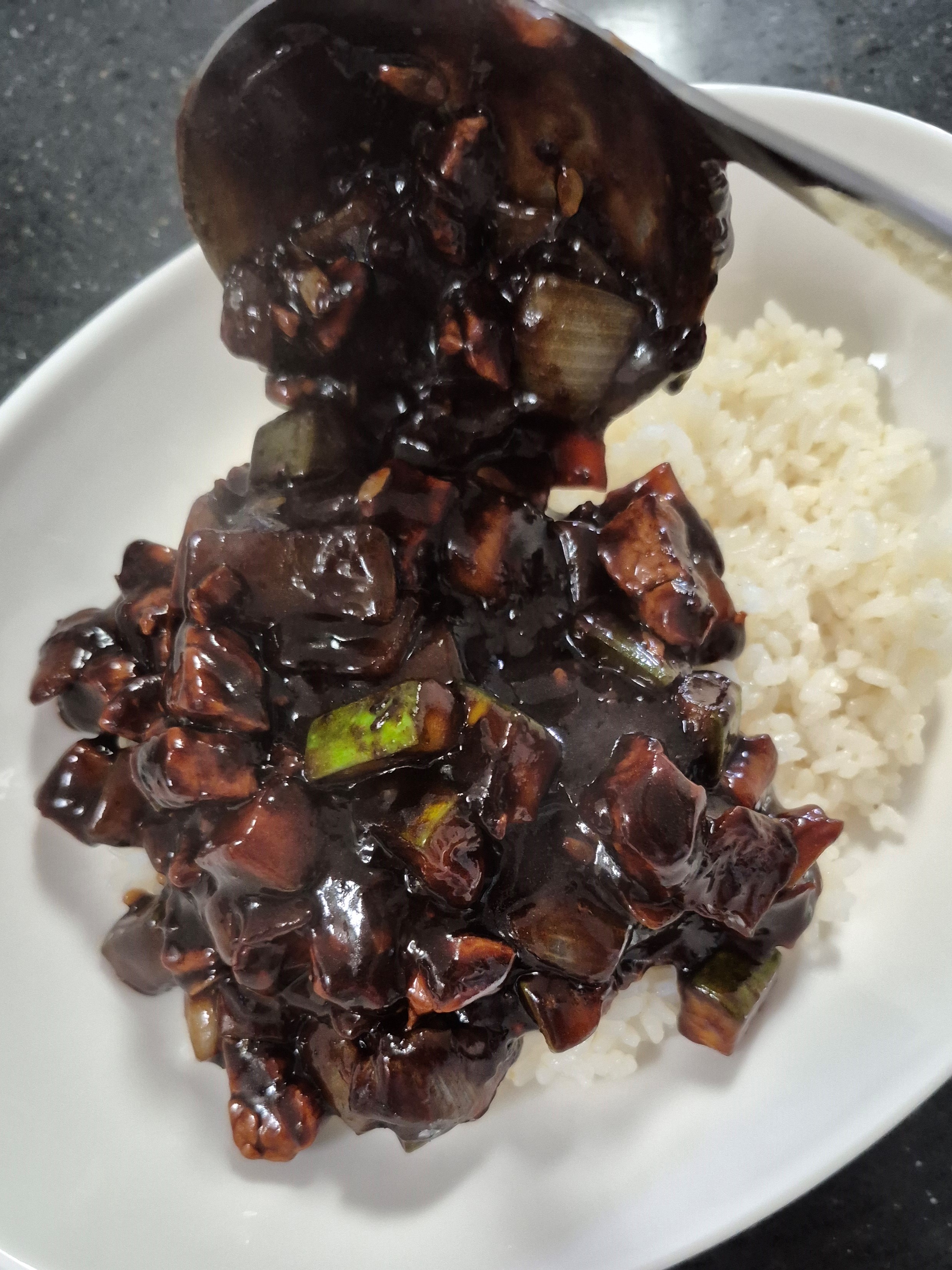 λ”°λˆν•œ λ°₯ μœ„μ— 짜μž₯을 λ„‰λ„‰νžˆ 올리고